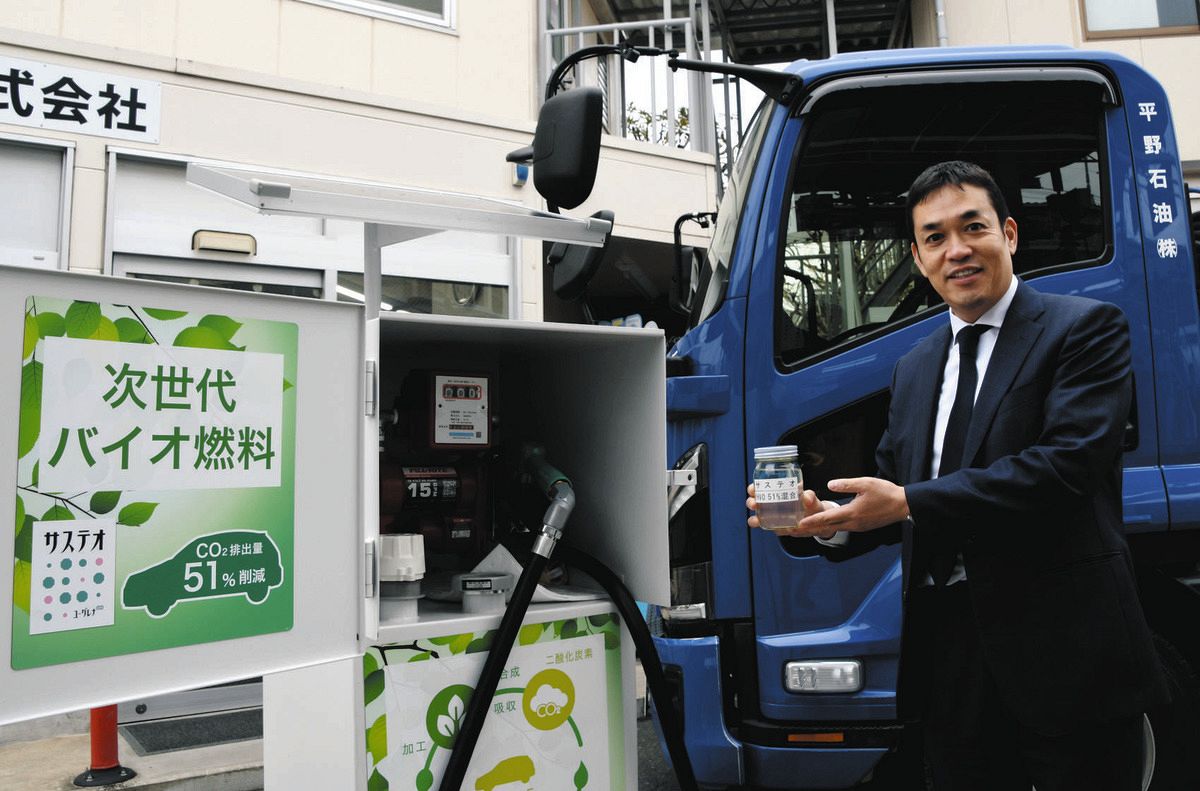 社用車への給油や、災害時の備蓄に脱炭素燃料はいかが──。建設重機などへの燃料配送を主に手がける平野石油(台東区)が、事業所向けに専用タンクを貸し出し、バイオ燃料を届けるサービスを始めた。平野賢一郎社長(50)は「既存の軽油の代わりに使える燃料を、温暖化対策に手軽に貢献できる選択肢として売り出したい」と意気込む。(鈴木太郎)