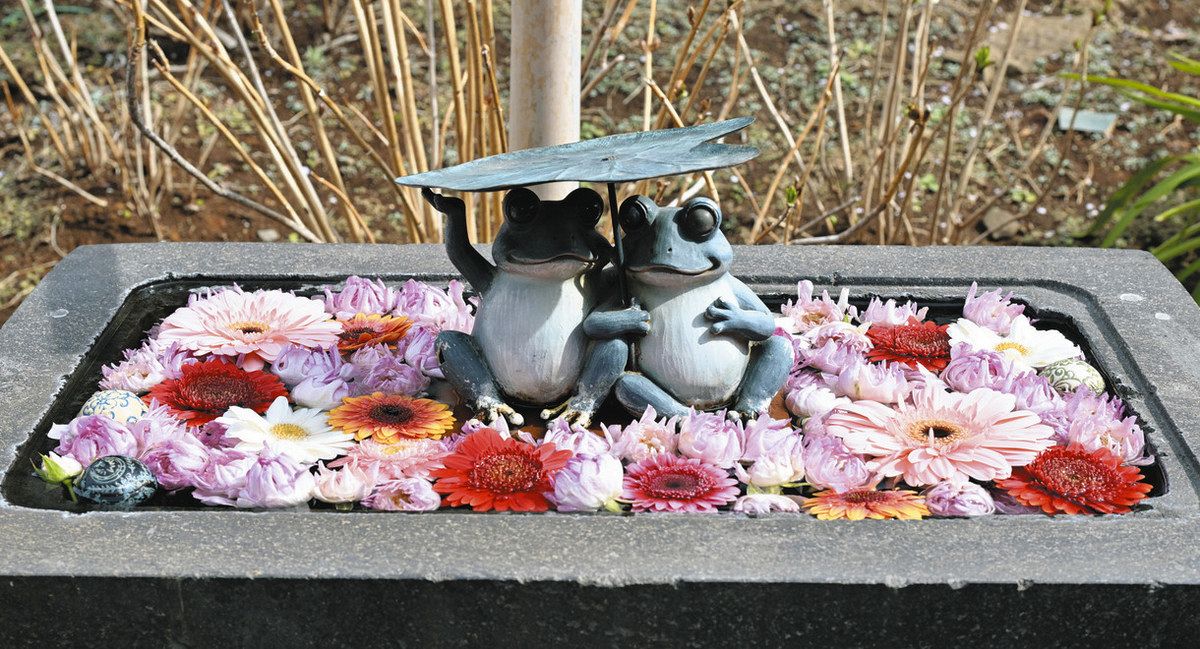 海野高敬(うんのこうけい)住職(35)が自ら花を選び、飾り付けも行うことが多い。気温にもよるが、冬場は10日に1回、夏の暑い時期は水温も上がるため2日に1回の頻度で花を替える。色合いはアイスなど食べ物を参考にするという。海野住職は「外国人観光客や老若男女が訪れ...
