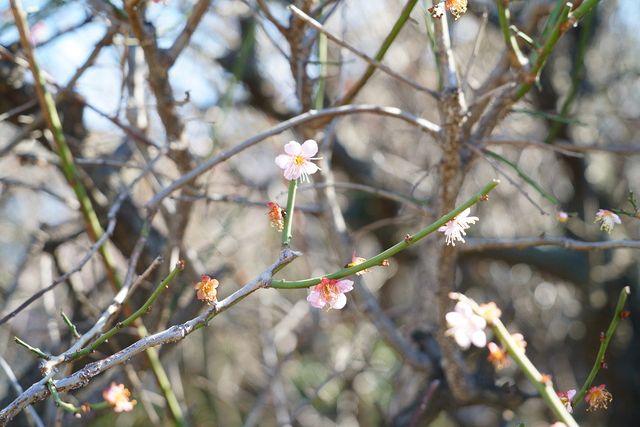 香取神社の「香梅園」。梅の花がまばらに咲きはじめていた取材時(3月上旬)の様子。境内に85種・120本の梅が植えられている。