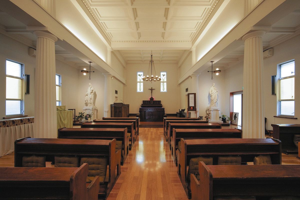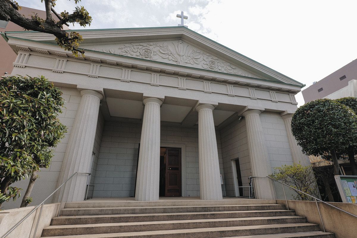 東京メトロの築地駅から5分ほど歩くと、ギリシャ神殿風の建物が厳かにそびえる。74年に創立されたカトリック築地教会。明治から令和の今日まで、1世紀半の時を刻んできた。