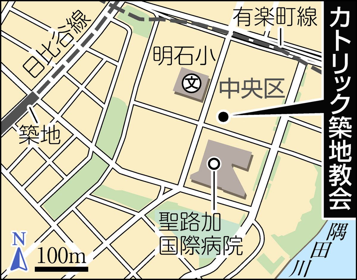 都内のカトリック教会では神田教会(千代田区)と並んで最も歴史がある。その築地教会が立つ中央区明石町一帯は明治の一時期、外国人居留地として栄えた。各教派が教会やミッションスクールを相次いで開設。パリ外国宣教会も築地教会の用地を74年に確保し、最初の聖堂を建てた。その後、本格的な聖堂を造ったが1923(大正12)年の関東大震災で焼失。4年後に今の聖堂が竣工(しゅんこう)した。