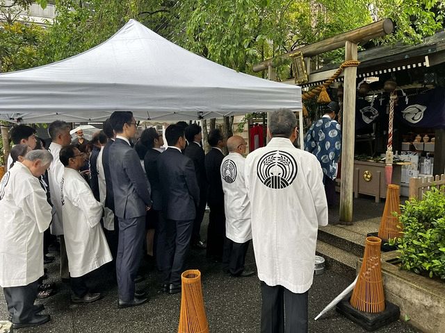献茶祭が行われるのは、日本橋七福神のひとつに数えられる茶ノ木神社です。町の人々からは「お茶ノ木様」としても親しまれており、当日は境内で献茶式が執り行われます。5月は新茶の季節ということもあり、摘みたての新茶が奉納され、感謝の祈りが捧げられます。