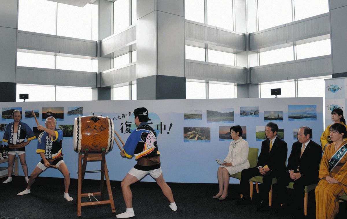 昨年10月の台風22・23号で被害が出た東京都の八丈島と青ケ島の観光産業の復興を支援するキャンペーンが6日、都庁第1本庁舎南展望室で始...