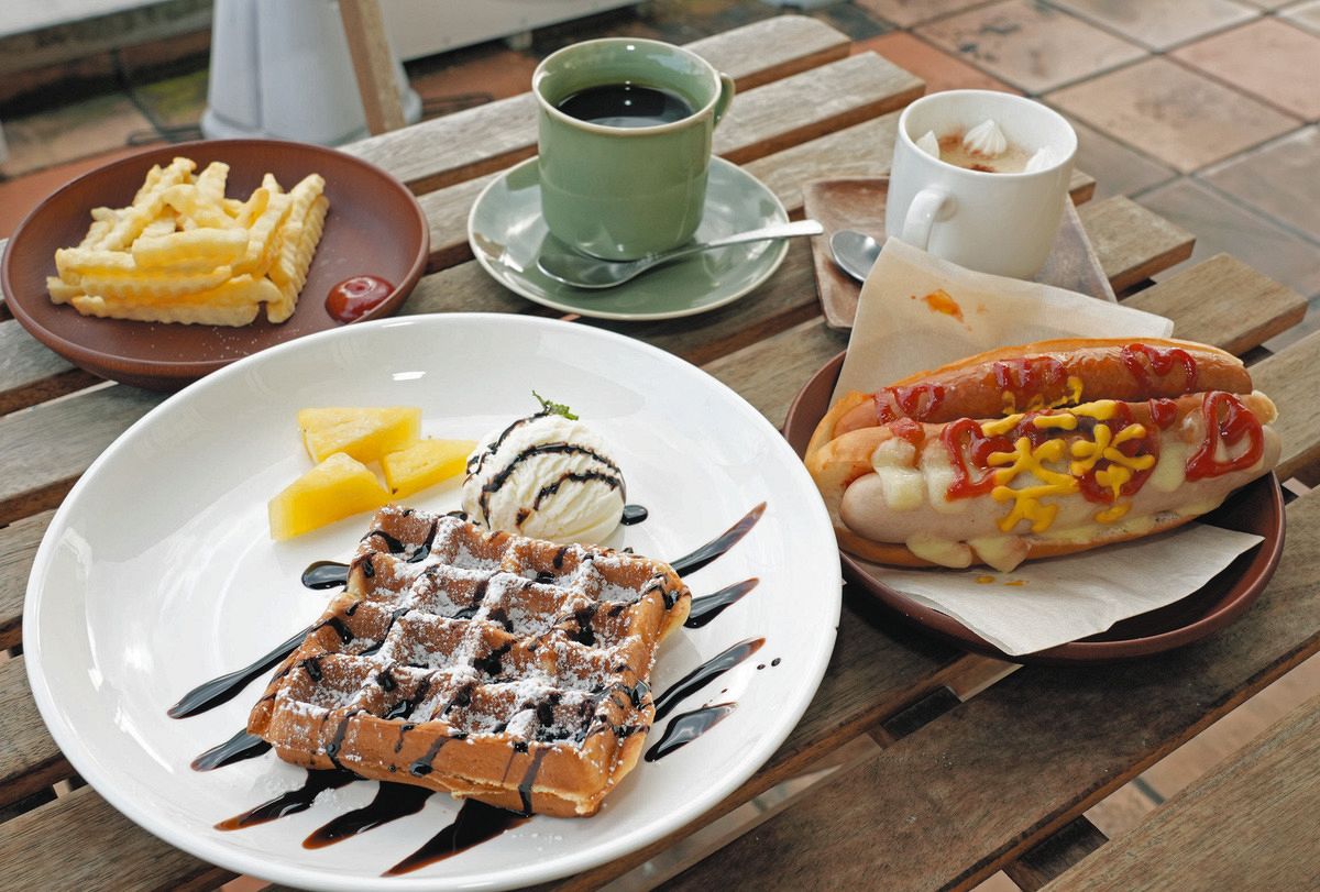 カフェで提供するホットコーヒーは3種類あり、値段が高い方から「殿様」「家老」「お手軽足軽」。城好きのプロレスラー藤波辰爾さんのネーミングだ。家老は足軽よりいい豆を15グラム使用、殿様は20グラム使う。人気のデザート「山中城ハニーワッフル」は、静岡県三島市にある山中城の「障子堀」がワッフルに似ていることから考案した。