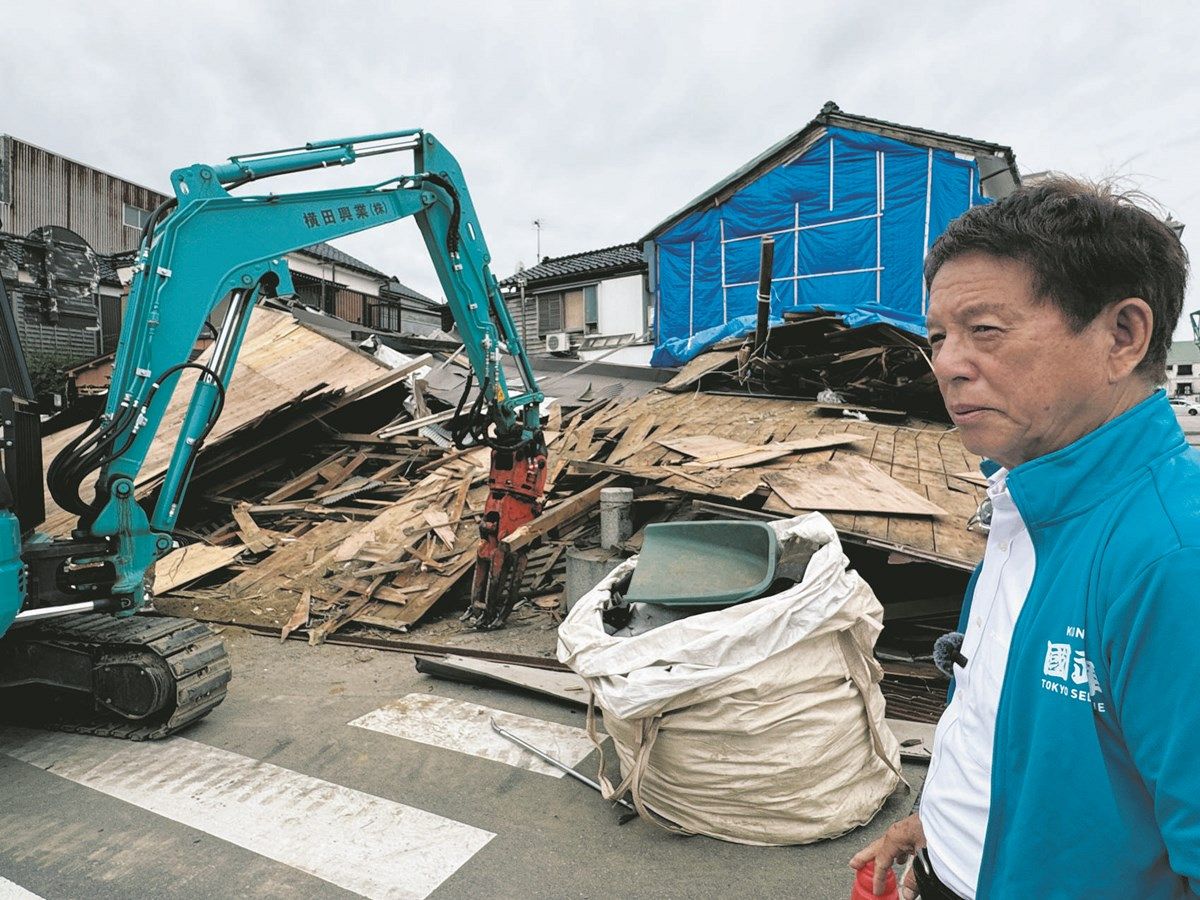 被災地を見て回る清水国明氏=7月2日、石川・能登半島で(事務所提供)