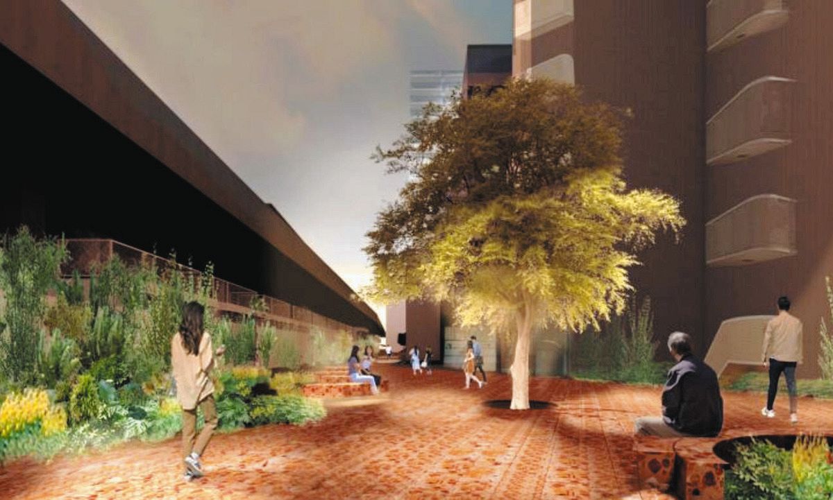 区緑道・道路構造物課などによると、現在の緑道は1982~85年度に造られ、老朽化が進んでいる。このため、帝国ホテル建て替えなどのプロジェクトを手がける建築家・田根剛さんのデザインで、農園や子どもの遊び場などのある緑道を再整備する。