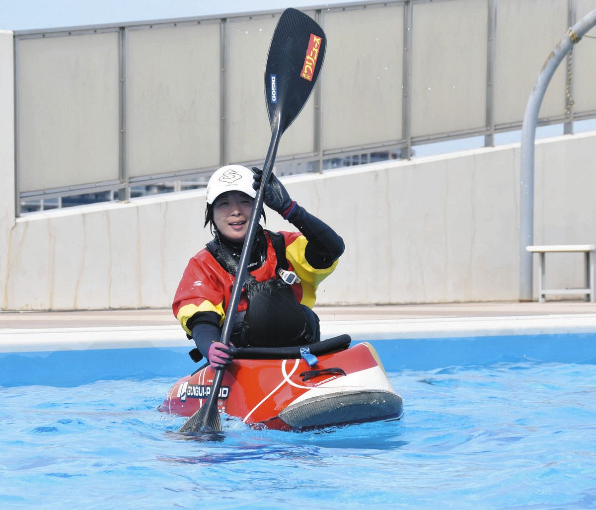 フリースタイルカヤック。耳慣れない名前の競技だが、実は八王子市に世界王者がいる。高久(たかく)瞳さん(42)は国内の第一人者で、世界選手権やW杯でも優勝している。国内外の河川を渡り歩く日々だが、地元での練習場所はなんと、市立小学校のプールだ。