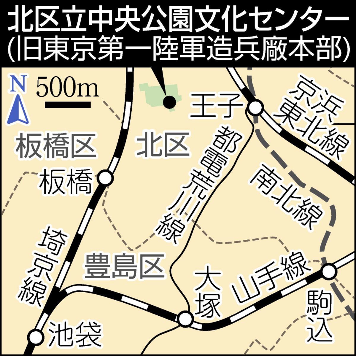 旧陸軍の軍需工場1905(明治38)年、文京区にあった東京砲兵工廠銃砲製造所が施設拡充のために移転。1940(昭和15)年に「東京第一陸軍造幣廠十条兵器製造所」となった。小銃実包や光学兵器、信管などを製造していた。本部庁舎は現在の北区立中央公園文化センター。レンガ倉庫の一部はモニュメントとして残され、戦争の記憶を伝える「戦争遺跡」となっている。