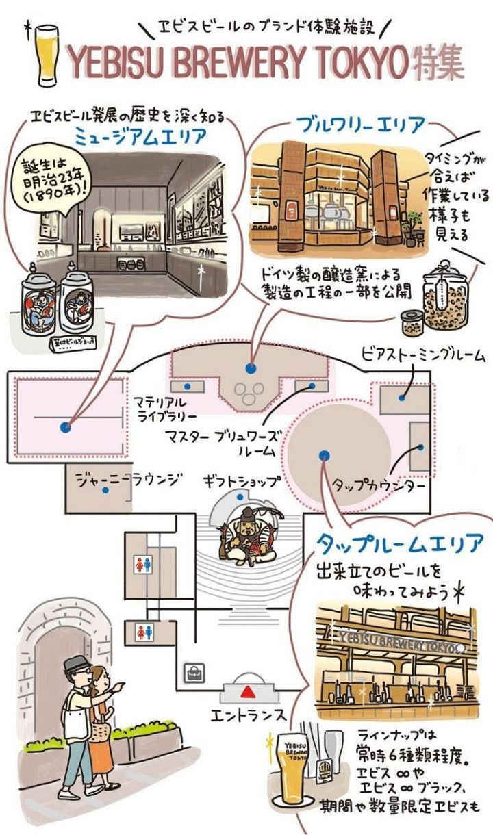 次ページに続く。醸造工程の一部を公開している「ブルワリーエリア」、とびきりのヱビスビールが味わえる「タップルームエリア」からなる館内をご紹介します。
