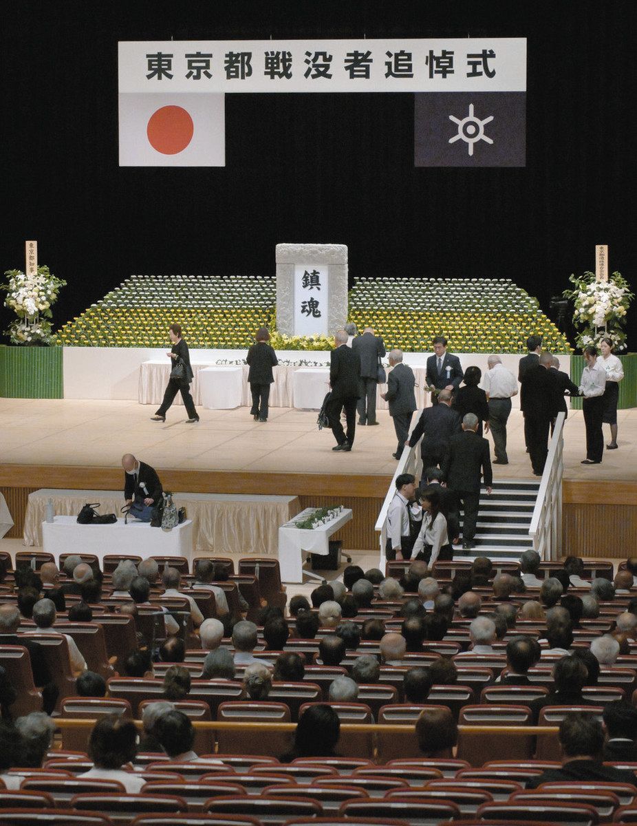終戦の日の15日、東京都と都遺族連合会が主催する戦没者追悼式が文京区の文京シビックホールで行われた。参列した遺族ら381人は戦死者らに思いをはせつつ、今もウクライナやパレスチナで続く戦争への憤りも語った。都によると、都に関係する戦没者は16万人余り。(原田遼)