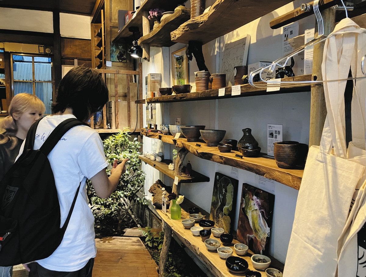 商店街のある京島や区北部の向島、八広、文花周辺の「八島花(やつしまはな)」エリアでは、2020年から古民家などでアート作品を楽しむ芸術祭「すみだ向島EXPO」を開催。海野さんも21年から参加している。ギャラリーには、海野さんの作品やEXPOを通じてエリアに興味を持った人のほか、最近では訪日客も多く訪れる。