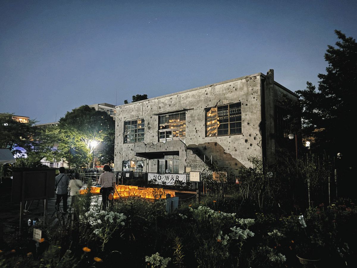 夕方に旧変電所がライトアップされ、周辺に設置された平和祈念のキャンドルも点灯。幻想的な雰囲気の中、東大和少年少女合唱団によるコンサートが行われた。