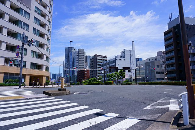 覚林寺の前にある清正公前交差点。清正公の読み方は「きよまさこう」ではなく「せいしょうこう」なので注意。