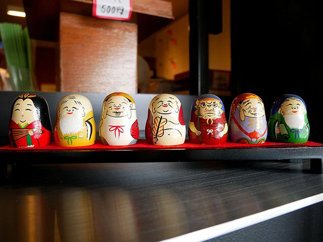 「七福神ダルマ」(1体500円)。各寺院の寺務所で入手できます。中におみくじが入っているので運試しにもぴったり。