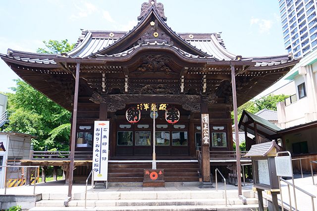 安土桃山時代から江戸時代初期にかけて活躍した武将・加藤清正が祀られ、「清正公(せいしょうこう)」とも呼ばれる覚林寺。ご本尊が祀られている本堂は清正公堂に向かって右手に、毘沙門天が祀られている毘沙門堂は清正公堂のほぼ対面にあります。武運の強かった清正公と、災難を除け福徳を授けると言われる毘沙門天にあやかり、近年では受験などの合格祈願に訪れる人も増えているそう。