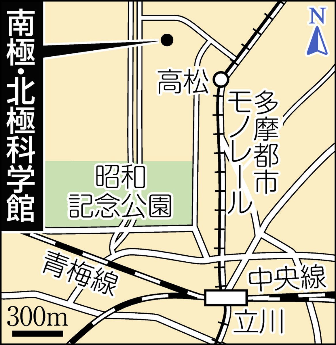 <南極・北極科学館>南極や北極の観測・研究を行う「国立極地研究所」の広報展示施設。極地研究の内容や歴史などについて学べるほか、南極の氷に触ることができる。多摩都市モノレール高松駅から徒歩10分。日、月曜と第3火曜は休館。入場無料。