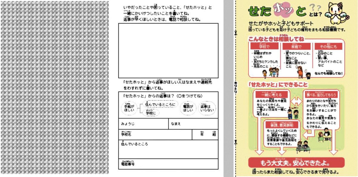 小学校低学年の利用率が高い「せたホッと」の専用はがき。裏面に悩みを書き、折って見えないようにして送る(いずれも世田谷区提供)