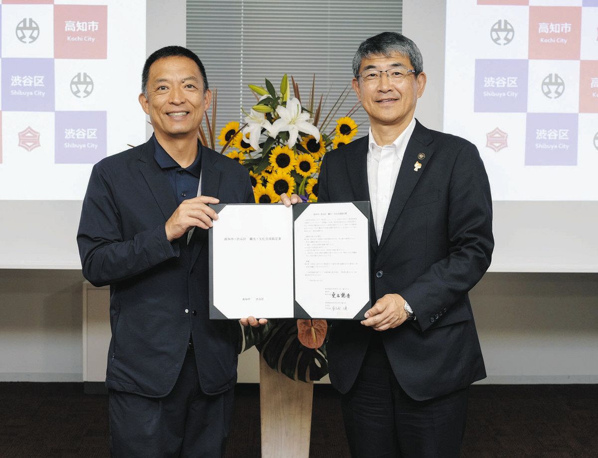 「よさこい」のイベントを通して交流してきた東京都渋谷区とよさこい祭り発祥の地の高知市が23日、観光と文化を通して交流を深める協定を結んだ。