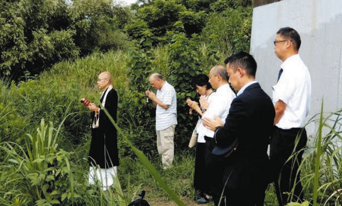 多摩川鉄橋下で営まれた慰霊法要=昭島市で