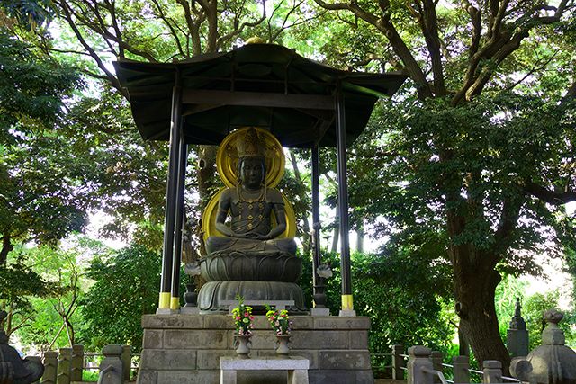 瀧泉寺大本堂の裏手に鎮座する大日如来像。目黒区の有形文化財に指定されています。