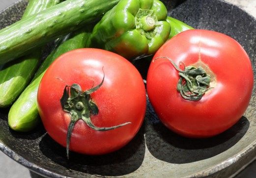 鮮やかな赤色のトマト。彩りやバランスのよい食事を心がける