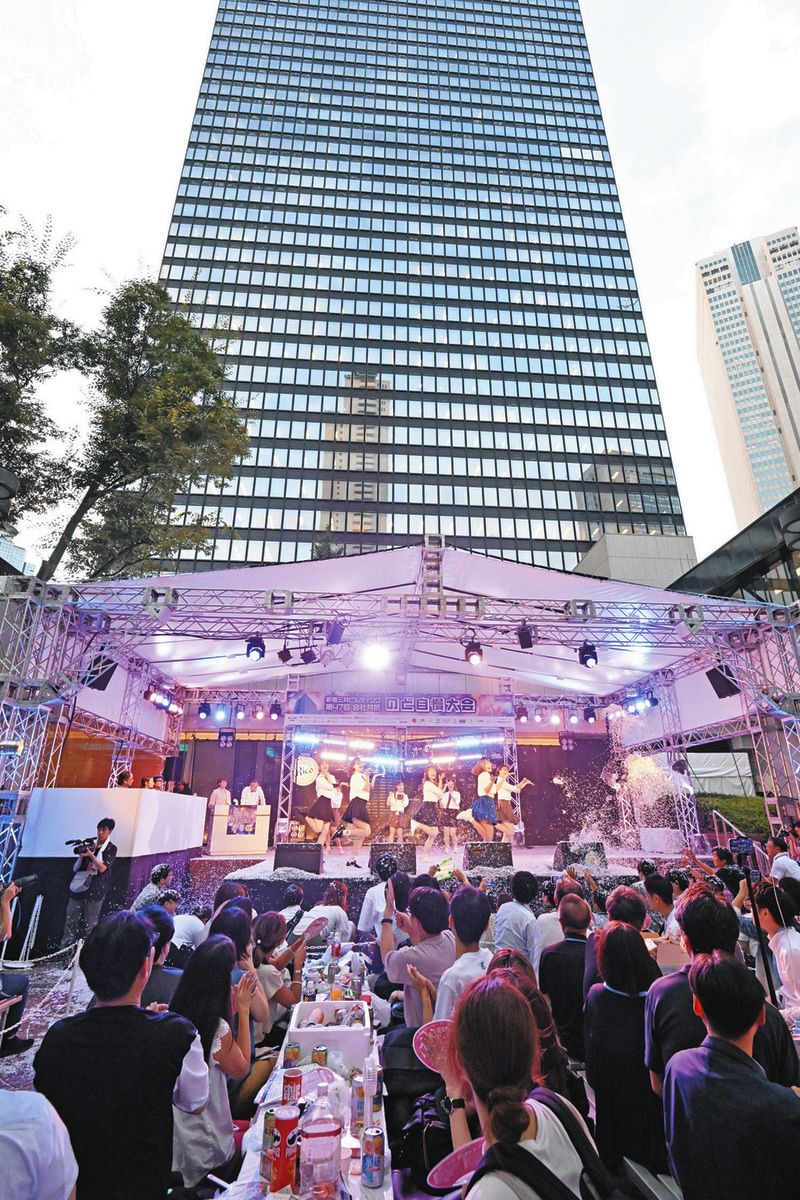 新宿のど真ん中で、半世紀にわたって大人が熱狂するカラオケ大会がある。都庁にほど近い新宿三井ビルディング(新宿区西新宿)のテナント企業による「会社対抗のど自慢大会」。各社を代表する「歌うま社員」のパフォーマンスの完成度は驚くほど高く、8月23日にあった決勝には1000人超の聴衆が集い、異様なまでの盛り上がりを見せた。