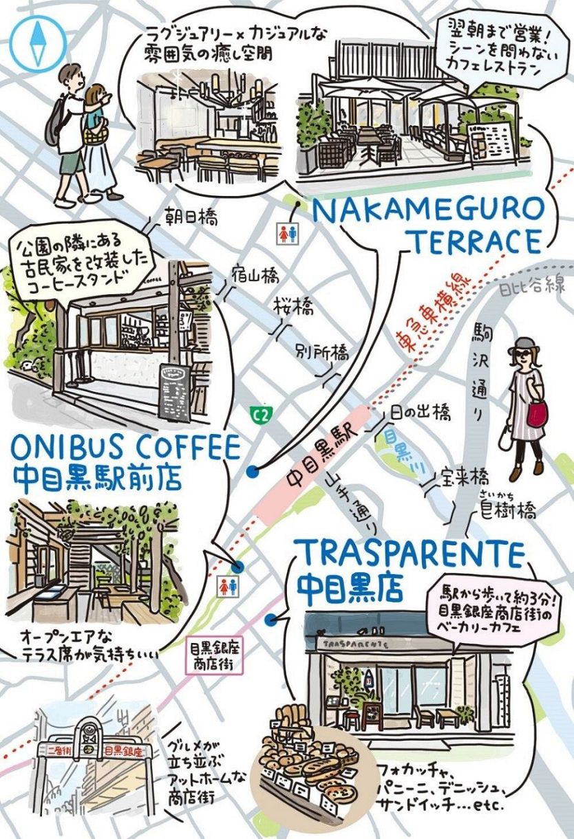 今やすっかりカフェ激戦区となった中目黒。今回は、ベーカリーカフェの「TRASPARENTE 中目黒店」、浅煎りのスペシャルティコーヒーにこだわった「ONIBUS COFFEE(オニバスコーヒー) 中目黒駅前店」、イタリアンバルスタイルのお店「NAKAMEGURO TERRACE」を紹介します。