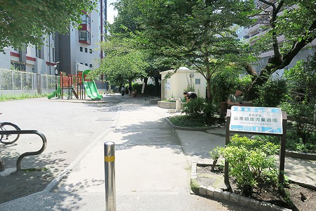 駅から高架沿いの小道を辿ると行き着く目黒銀座児童遊園。この公園の入口には、「ONIBUS COFFEE 中目黒駅前店」があります。