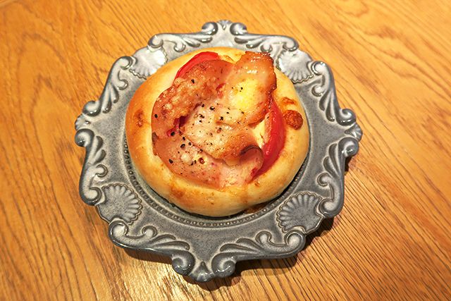 パンのラインナップは時期によって入れ替わります。今季のおすすめは、「モルタデラとトマトのフォカッチャ」(テイクアウト510円、イートイン520円)。