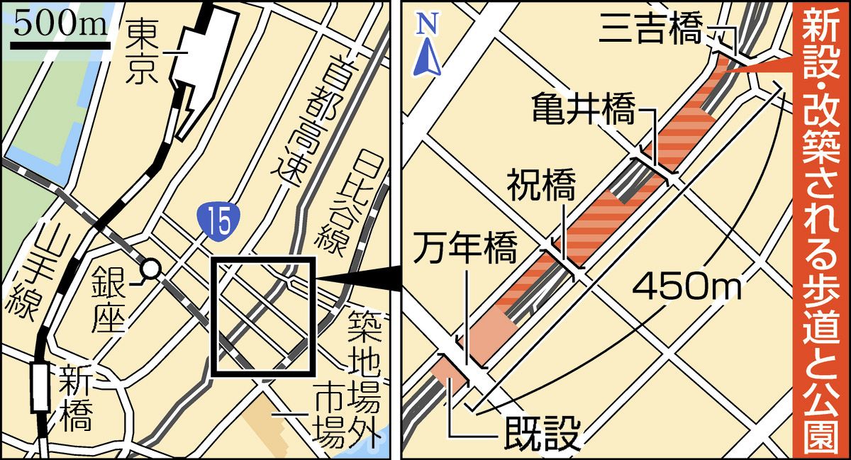 川の跡を利用した半地下の首都高に「ふた」をすることで、多くの人が訪れる銀座・築地周辺の回遊性を高める狙いがある。既存の公園は地元の祭りにも使われており「歴史や文化に配慮した新しい公園にしたい」と区の担当者は話す。