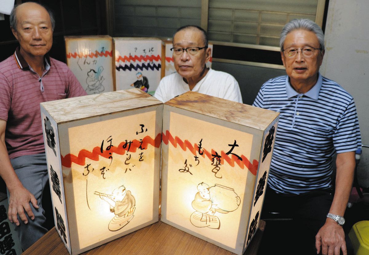 点灯時間は午後6~11時。千住5丁目町会長の山崎貴司さん(74)は「地口行灯の点灯は、この時期の風物詩として定着してきた。ぜひ見に来てほしい」と呼びかけている。(細川暁子)