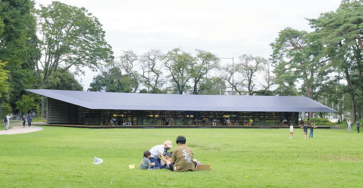 芝生と林に囲まれた図書館「まちライブラリー@MUFG PARK」=西東京市で