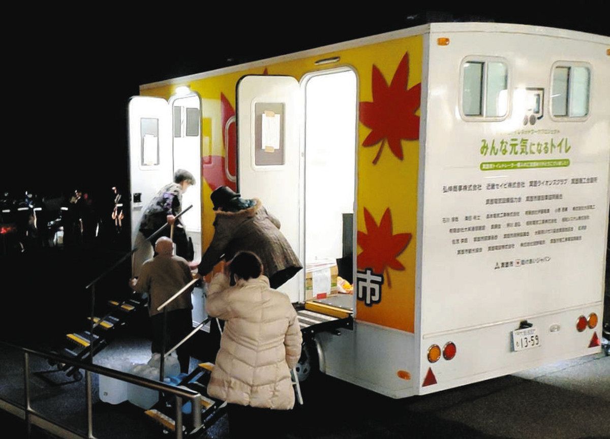 能登半島地震で断水などでトイレが使えなくなったのを教訓に、首都直下地震など大規模災害に備えて購入を決めた。トラックの荷台に洋式トイレ4室と多機能トイレ1室を備える。