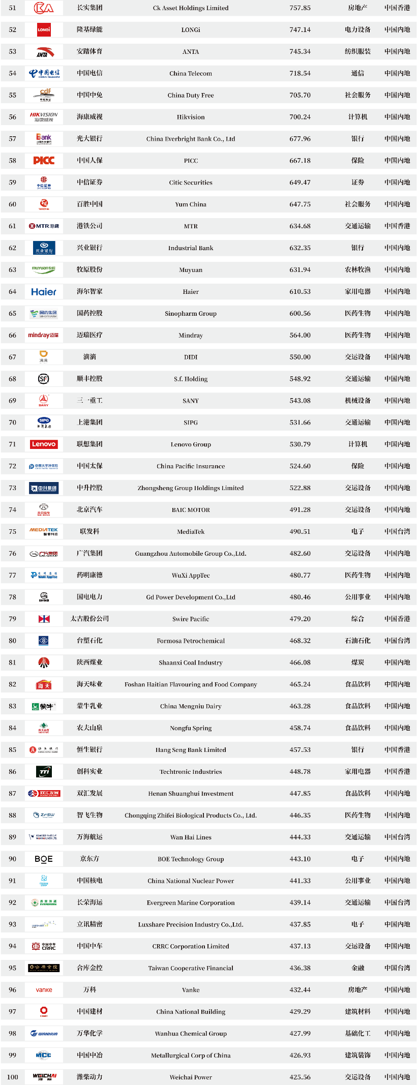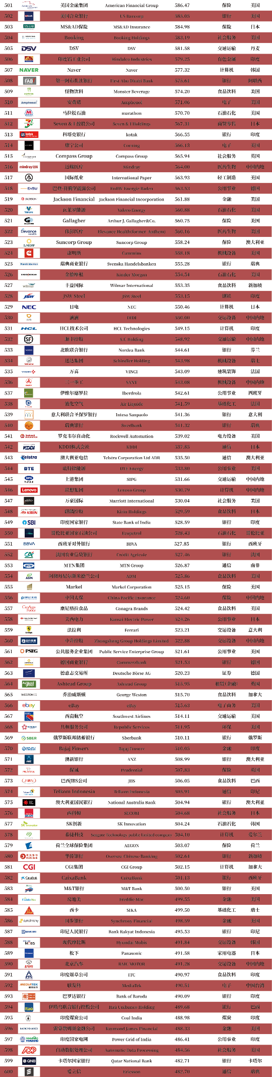 ランクインした国や地域の数ではアメリカが依然としてトップを維持し、中国と日本がそれぞれ2位と3位にランクインしていますが、全体的に景気が安定して好転していることが企業経営に有利に働いていると考えられます。将来を展望すると、伝統産業と新興産業の両翼がそろって、経済発展を助け、企業ブランドの価値を高めます。