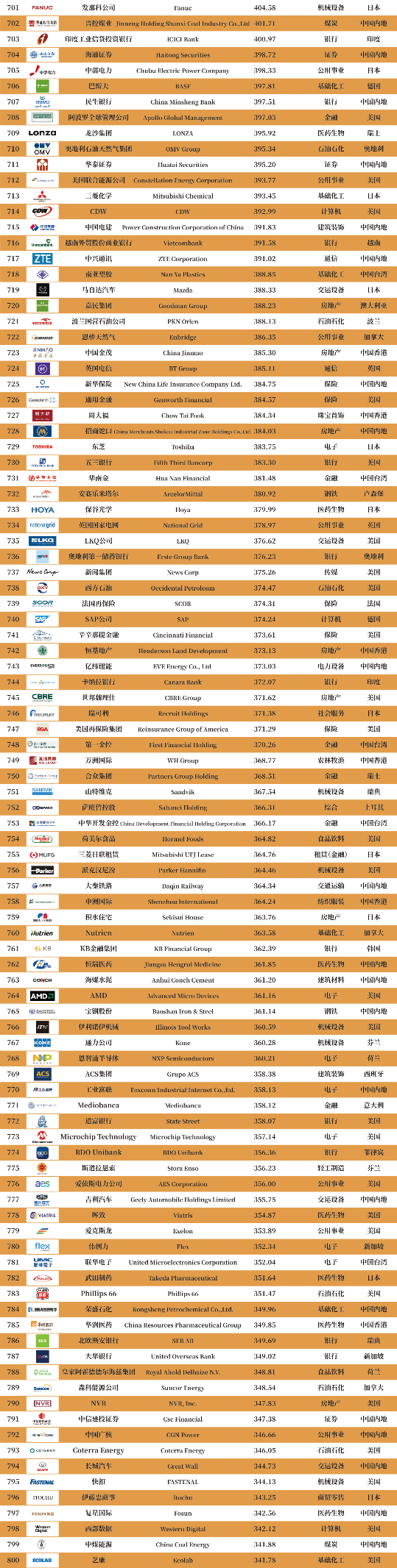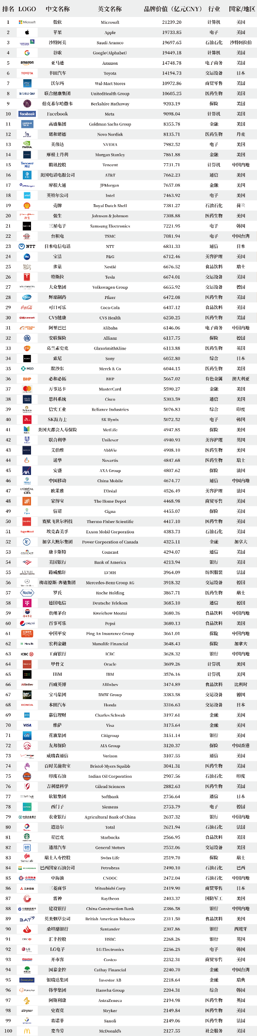 現在、スイスの“ネスレ”、ベルギーの“AB InBev”、韓国の“サムスングループ”、英国の“ユニリーバ”“ダイアジオ”“リジェッツ”、ドイツの“シーメンス”“ポルシェカー”“ヘンケル”“ドイツポスト”、フランスの“ポーラ”“ユーラヤ”“LVMH”、米国の“P & G”“コカ·コーラ”“スターバックス”“UPSエクスプレス”“フェデックス”“デルテック”“ボーイング”“キンバリー”“モンスター飲料”“マリオット·インターナショナル”“ホーメルフーズ”デンマークの“カールスバーグ”オランダの“ハイネケン”イタリアの“エニグループ”“イタリア郵便”日本の“京セラ”“ダイキン”“シコム”“パナソニック”“ソニー”“日本郵便ホールディングス”中国の“五条”、“蘇州老蔵”、“チャイナモバイル”、“チャイナ平安”、“AIA保険”、“Jingdong”、“中国人寿”、“グリー電気”、“Xiaomi Group”、“Hikvision”、“Lenovo Group”、“SF Holding”、“農民山泉”、“双輝発展”、“中国太平”、“TCLテクノロジー”、“古井ゴン酒”、“中国国旅”など、国内外の100社以上の“世界ブランド価値トップ900リスト”に参加しています。ブランドパーティー 900”、ホテル、航空、ヨット、スポーツ、フィットネスなどの高品質なリソースが追加されています。