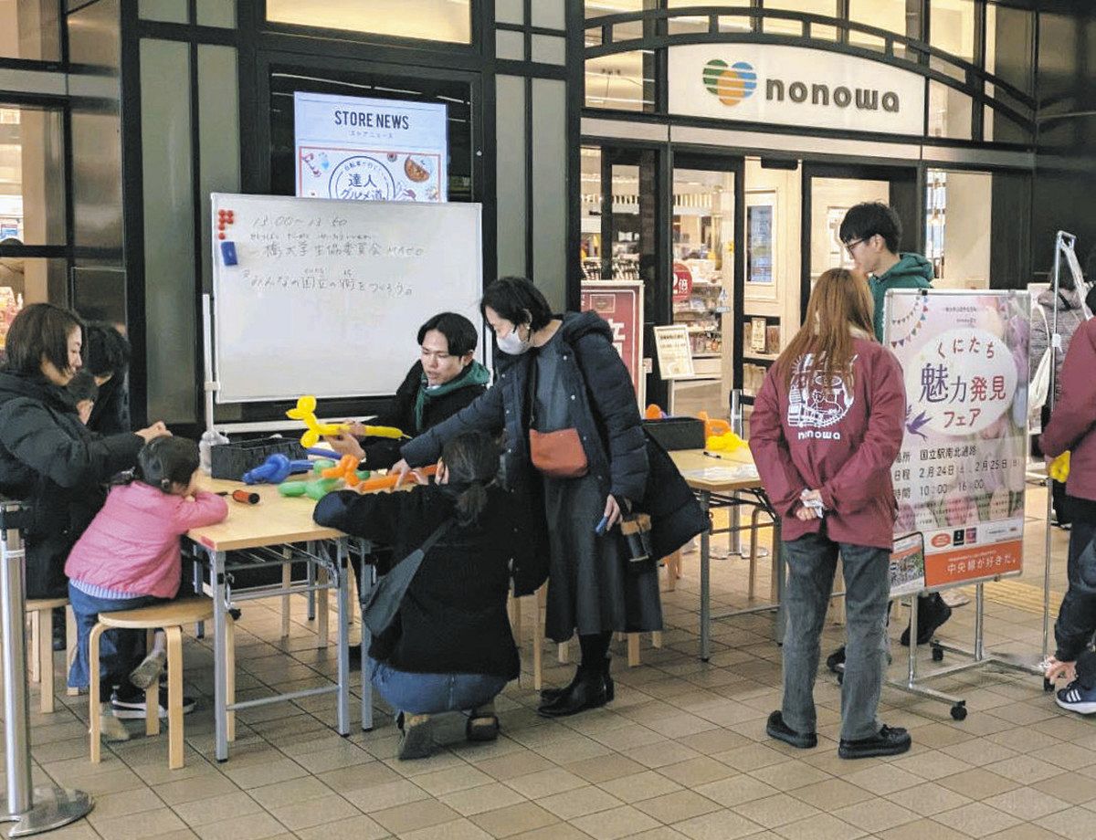 JR国立駅職員と一橋大の学生が協力し、地域を盛り上げるイベント「くにたち魅力発見フェア」が21、22の両日、同駅南北通路で開かれる。地元商品を販売するマルシェや、学生サークルによるワークショップがある。
