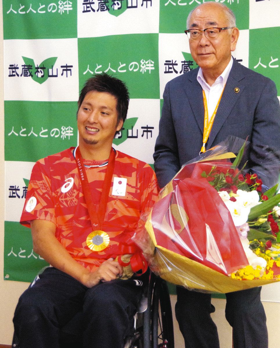 パリパラリンピックの車いすラグビーで、日本初の金メダルを獲得した東京都武蔵村山市の小川仁士選手(30)が19日、市役所を訪れ、山崎泰大市長らに報告した。