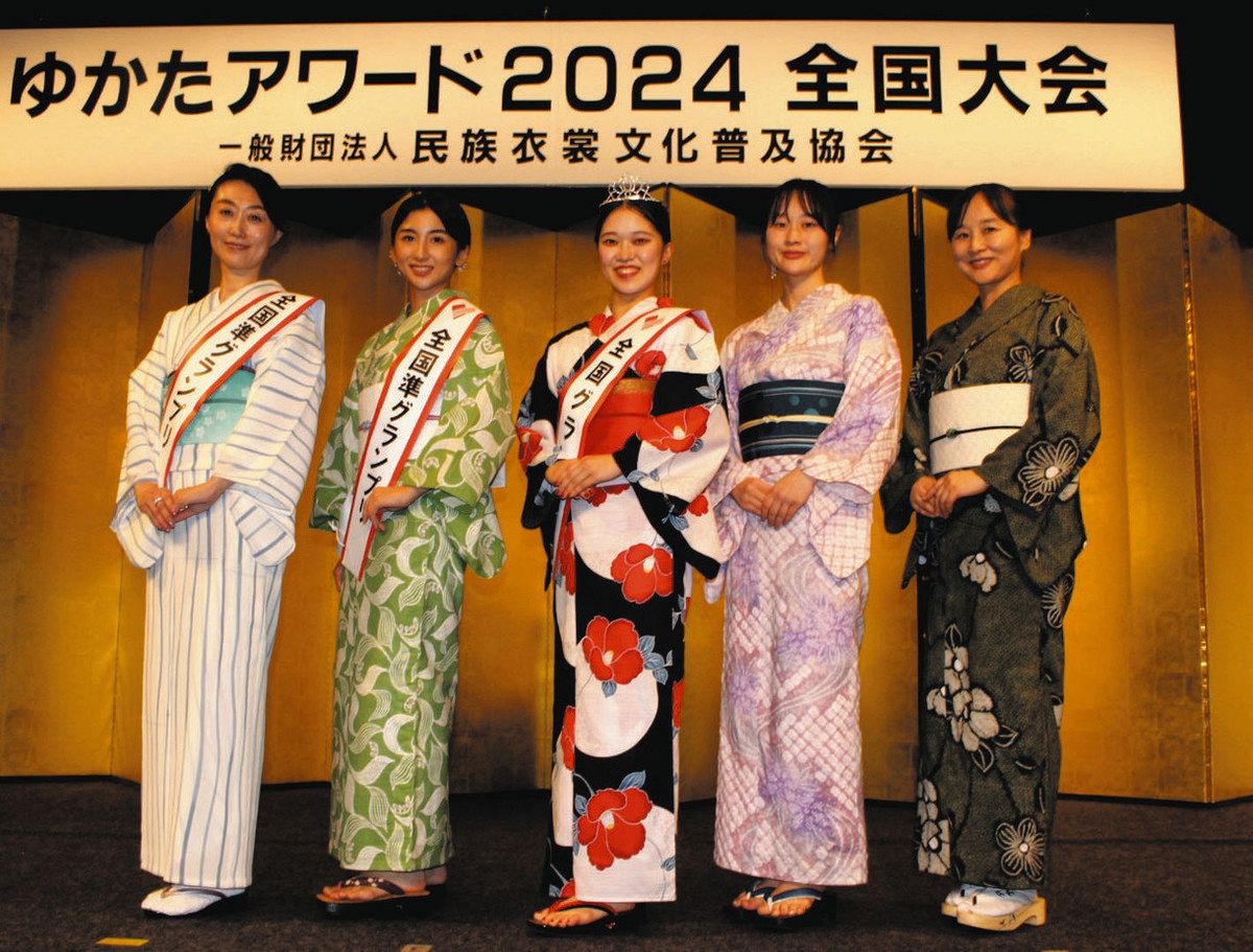 浴衣の着こなしや所作の美しさを競う「ゆかたアワード2024全国大会」(民族衣裳文化普及協会主催、本社後援)が21日、東京都文京区内のホテルであった。グランプリには、愛知県半田市の名古屋市立大2年、藤田亜海さん(21)が輝いた。