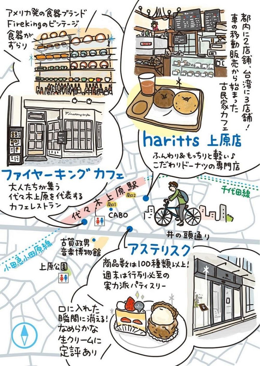 住宅地の洗練された街並みに異国のムードがミックスされ、独特の雰囲気を醸し出す代々木上原の注目店を探訪。代々木上原を代表する人気カフェ「ファイヤーキング カフェ」、ドーナツ専門店の「haritts 上原店」と、行列必至の人気パティスリー「アステリスク」を紹介します。
