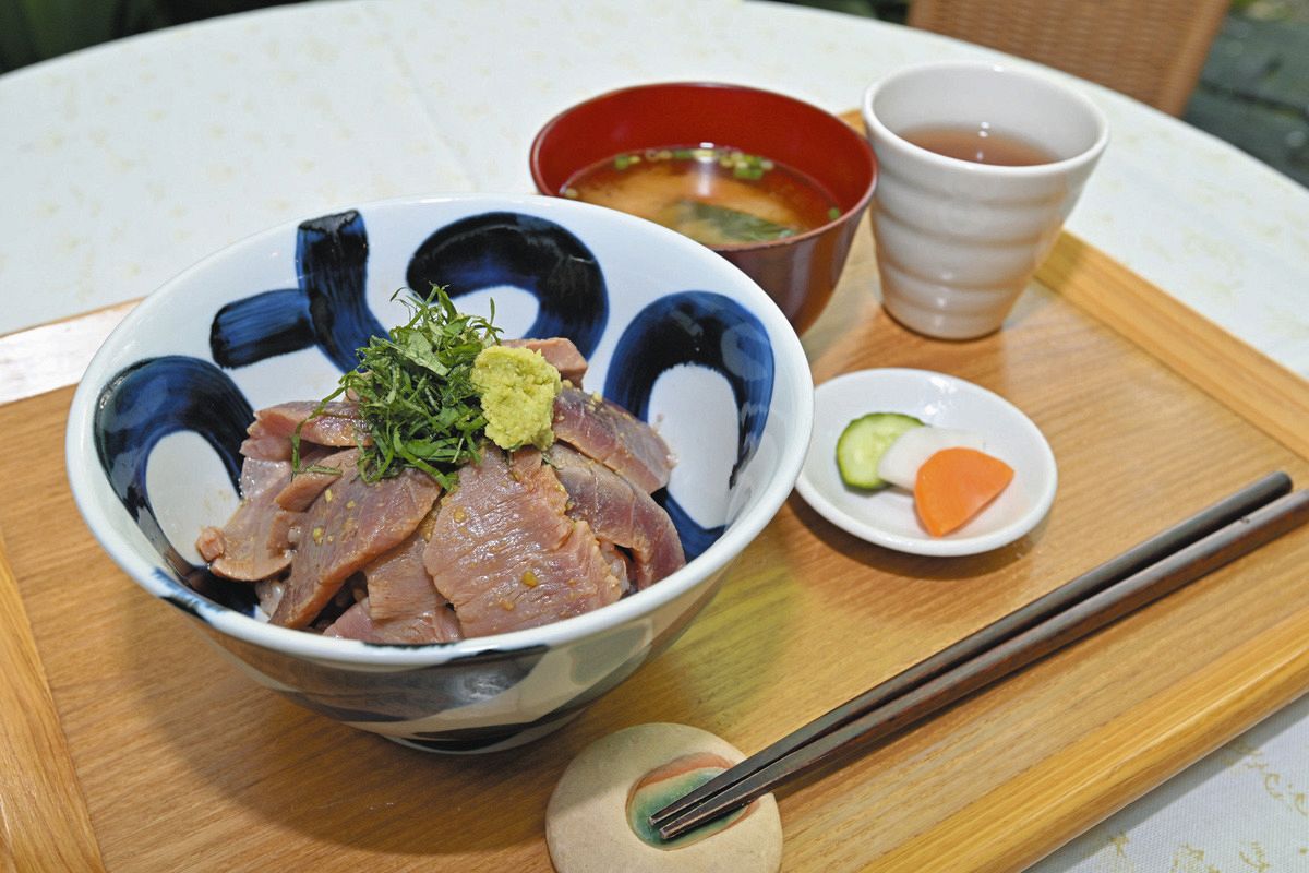 「まぐろの泣きごはんセット」2640円(夜)村井弦斎「食道楽」(中公文庫、990円)より
