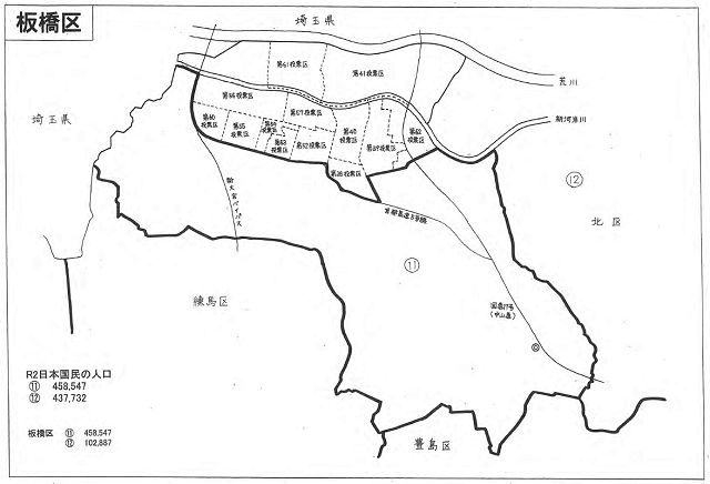 本庁管内の板橋一丁目、板橋二丁目、板橋三丁目、板橋四丁目、加賀一丁目、加賀二丁目、大山東町、大山金井町、熊野町、中丸町、南町、稲荷台、仲宿、氷川町、栄町、大山町、大山西町、幸町、中板橋、仲町、弥生町、本町、大和町、双葉町、富士見町、大谷口上町、大谷口北町、大谷口一丁目、大谷口二丁目、向原一丁目、向原二丁目、向原三丁目、小茂根一丁目、小茂根二丁目、小茂根三丁目、小茂根四丁目、小茂根五丁目、常盤台一丁目、常盤台二丁目、常盤台三丁目、常盤台四丁目、南常盤台一丁目、南常盤台二丁目、東新町一丁目、東新町二丁目、上板橋一丁目、上板橋二丁目、上板橋三丁目、清水町、蓮沼町、大原町、泉町、宮本町、志村一丁目、志村二丁目、志村三丁目、坂下一丁目(一番から二十六番まで及び二十八番に限る。)、東坂下一丁目、小豆沢一丁目、小豆沢二丁目、小豆沢三丁目、小豆沢四丁目、西台一丁目、西台二丁目、西台三丁目、西台四丁目、中台一丁目、中台二丁目、中台三丁目、若木一丁目、若木二丁目、若木三丁目、前野町一丁目、前野町二丁目、前野町三丁目、前野町四丁目、前野町五丁目、前野町六丁目、三園二丁目、東山町、桜川一丁目、桜川二丁目、桜川三丁目