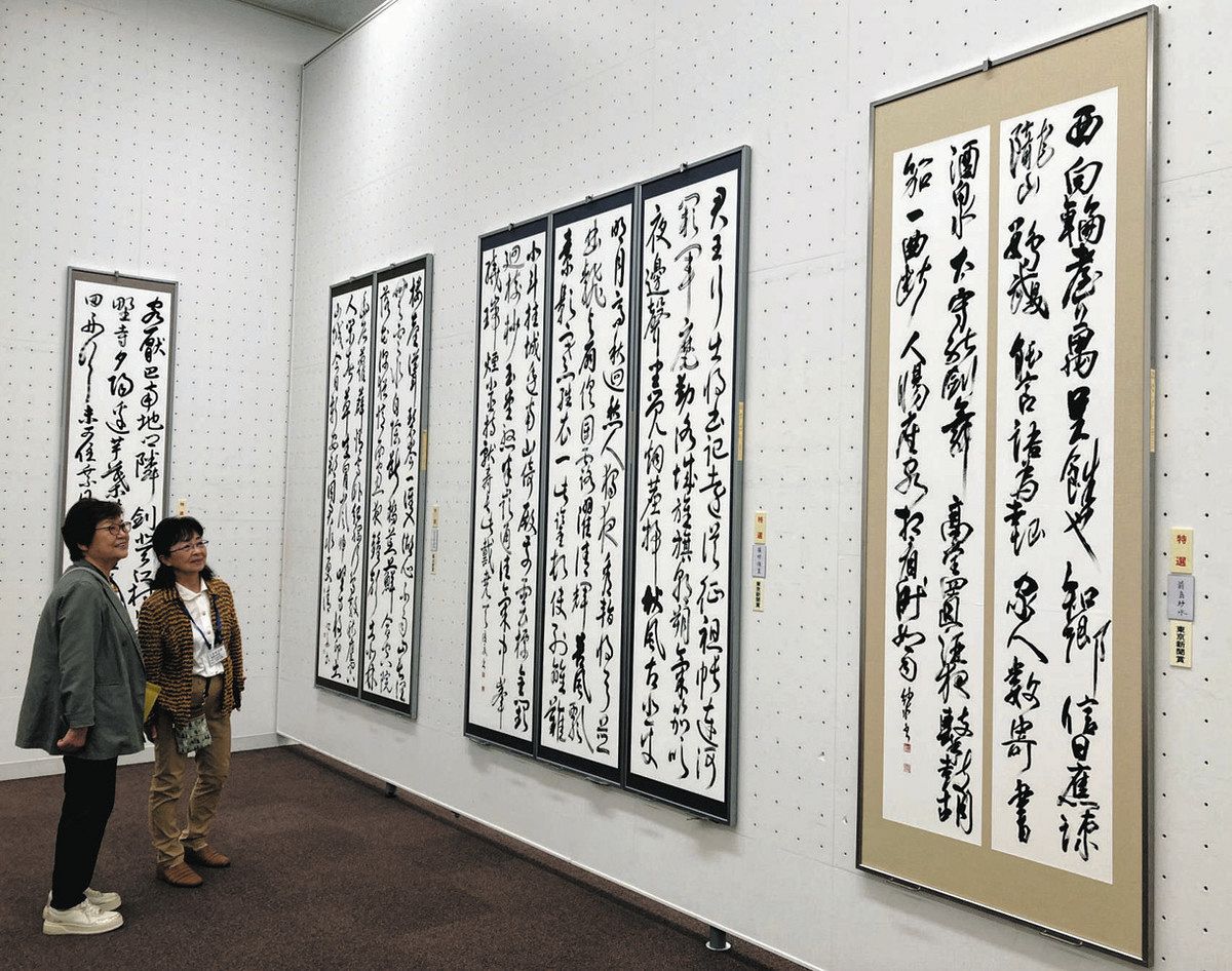 首都圏などの同人、一般の力作計180点を展示。特選のうち東京新聞賞には荒川区の前島紗水(さすい)さんと横浜市緑区の藤村優夏さんの作品がそれぞれ選ばれた。
