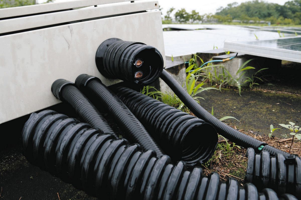 切断された太陽光発電所の送電ケーブル(資料写真、本文と関係ありません)