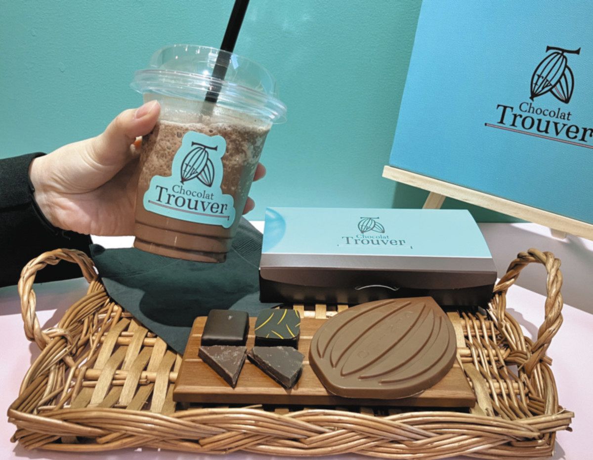 【ショコラ・トルベ】フラッペ・オ・ショコラ(左)とセントーのショコラなど。手前右はカカオデュボヌール