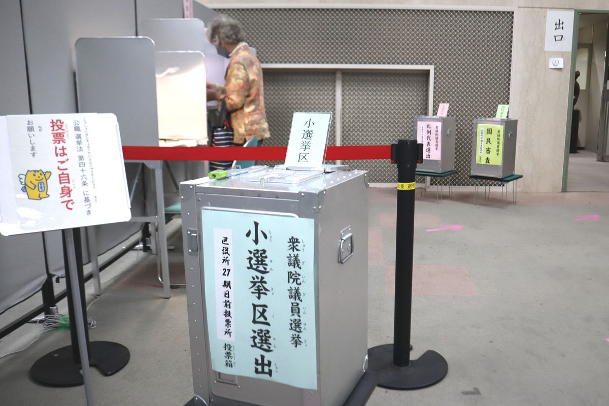 期日前投票に訪れた有権者=16日、都内で