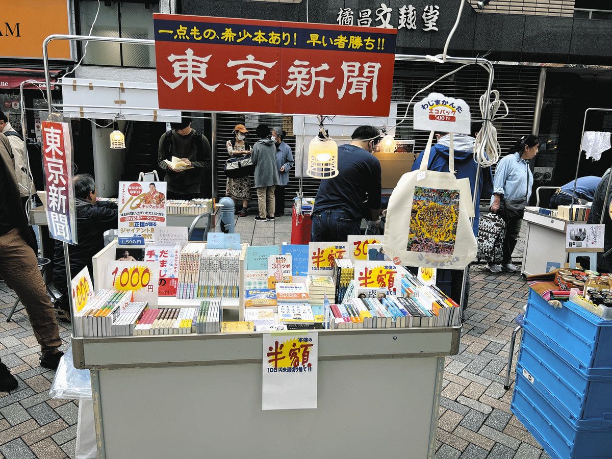 ブックフェスに出店した東京新聞のワゴン=昨年、神田神保町のすずらん通りで