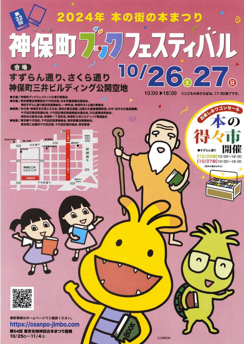 「本の街・神保町」の恒例行事で、メイン会場のすずらん通りでは「本の得々市」として本紙を含む出版社が計197台のワゴンで出店し、謝恩価格で書籍を販売。