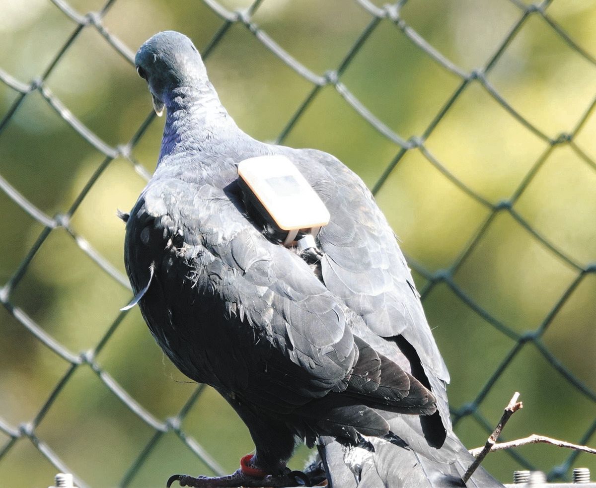 GPS装置を付けたカラスバト=2022年4月、大島町で(市石博さん撮影)