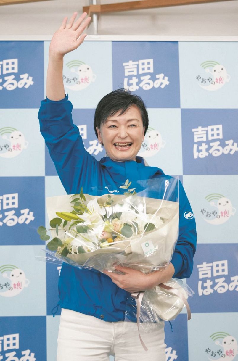 吉田さんは深々と頭を下げ、花束を受け取ると「みなさまのおかげです。ありがとうございます」。支援者たちを前に「本当に引き締まる思いです。これからはまさに正念場。私はいつも選挙の後にこそ、政治家の資質が問われると思っています。壊れてしまった政治の信頼回復、それをもう一度皆さまと、政治の仲間であると思っている皆さまと、国民が主役の政治のため、皆さまと共に歩んでいく覚悟です」と語った。