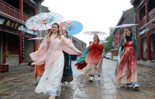 油紙傘を手に持ち、漢服を着て、青石の道を歩く。しっとりとした細雨の中、無棣古城に足を踏み入れ、異なる「煙雨江南」を味わう。10月18日、ロシアからの多くの留学生が山東省の無棣県に訪れ、「山東を歩き、濱州を感じる」活動に参加した。彼女たちは無棣古城で、植物染め、漆扇の制作、絨刺繍技術、提灯作り、漢服の装飾などのプロジェクトを体験し、中国の伝統文化の魅力を身近に感じた。